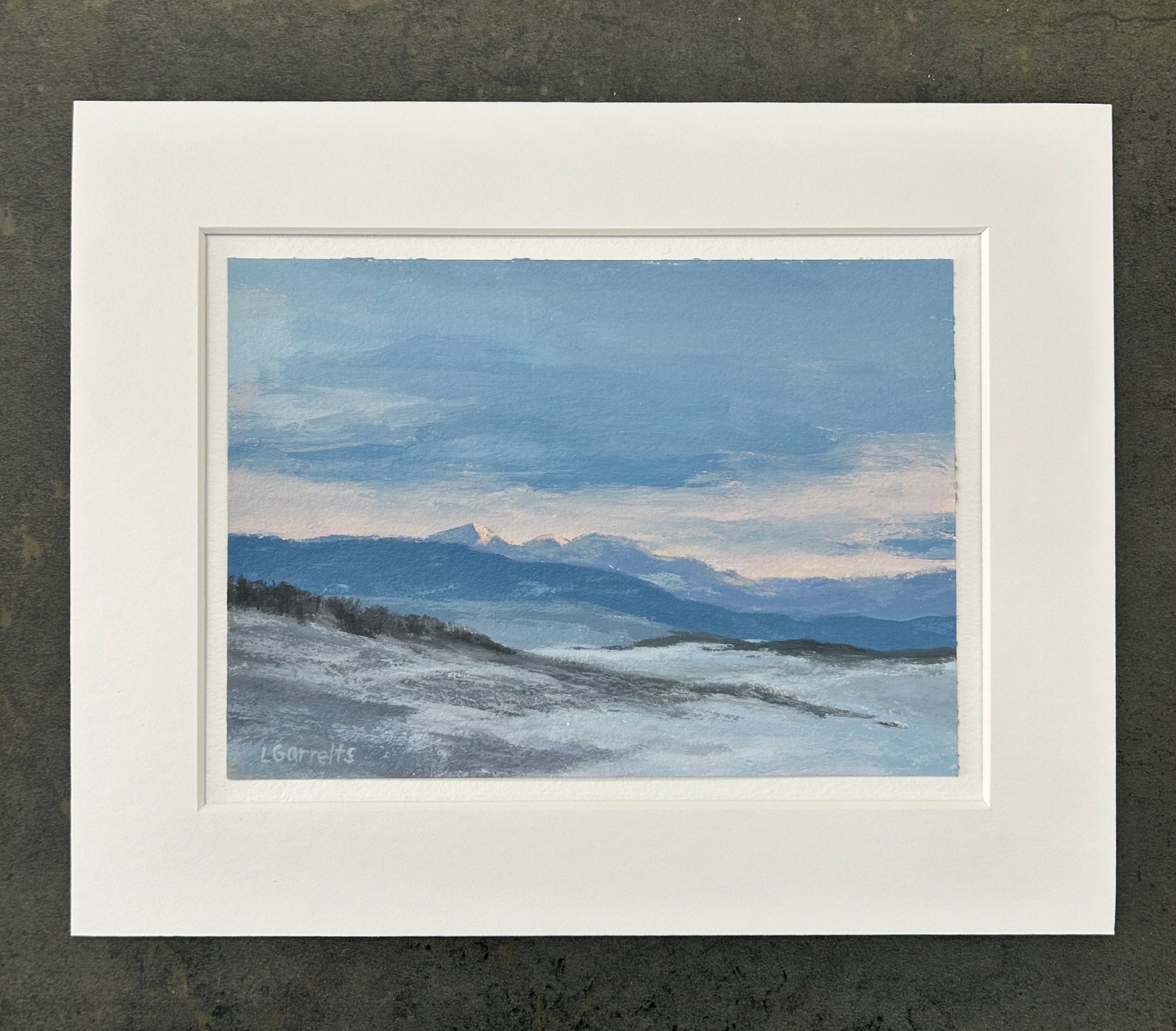 "First Light" is an original 5x7 acrylic painting on Arches oil paper. The painting is matted and sized to perfectly inside any 8x10 frame with glass. Frame is not included.