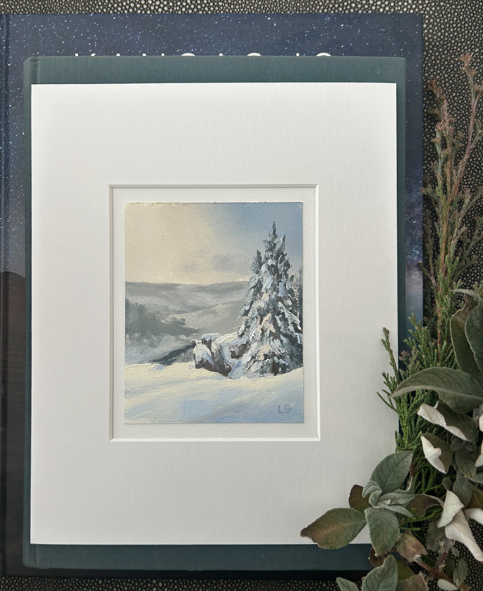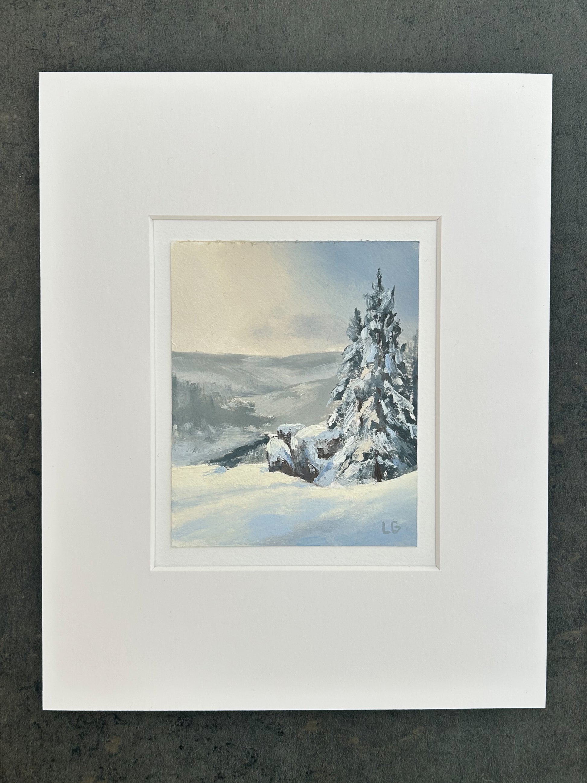 "Overlook" is an original oil painting on Arches oil paper. This painting was inspired from a scenic overlook in Yellowstone National Park in the winter.